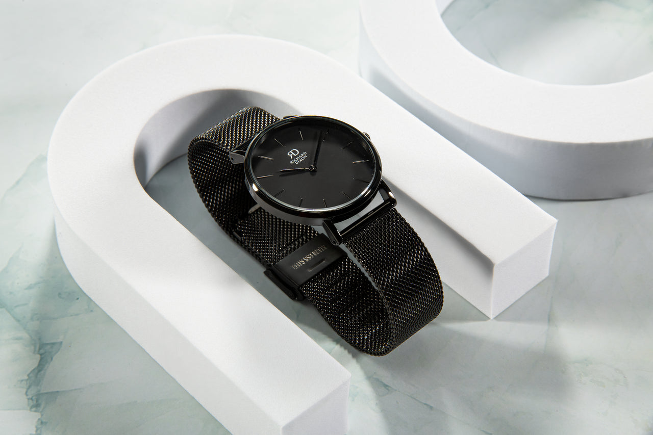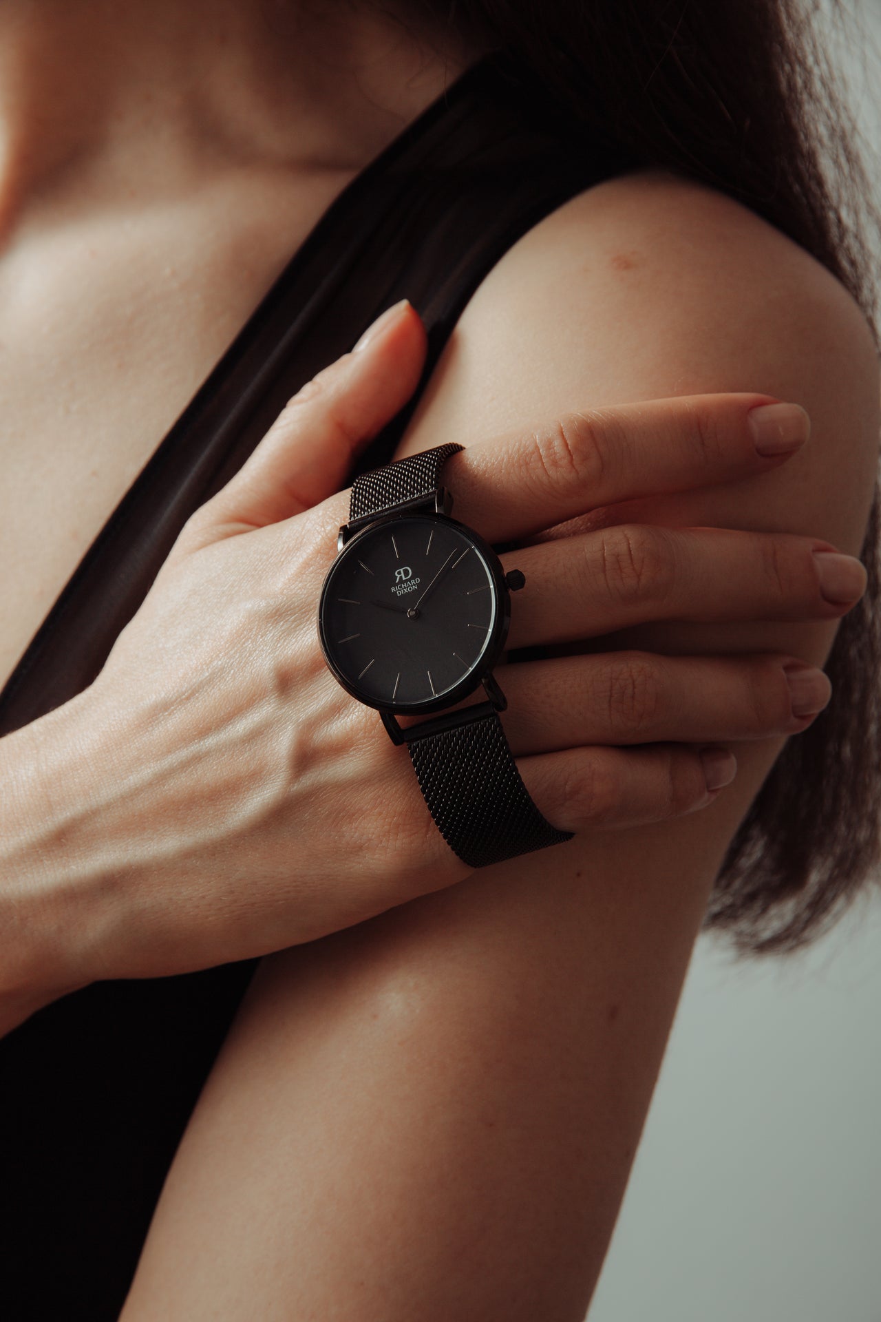 Construído em aço inoxidável de alta qualidade, o Classic Mesh Full Dark garante durabilidade sem comprometer o estilo. A sua resistência à água até 3 ATM assegura segurança no quotidiano, mesmo em situações imprevistas. O movimento de quartzo japonês garante uma precisão inigualável, enquanto o vidro mineral endurecido oferece proteção extra contra riscos. A bracelete de malha milanesa é ajustável, adaptando-se confortavelmente ao pulso. A estética completamente preta confere-lhe uma sofisticação discreta que nunca passa despercebida, seja num encontro de negócios ou num passeio descontraído. É um relógio desenhado para mulheres que procuram versatilidade e classe, e que sabem que o tempo, tal como a moda, deve ser vivido com estilo e propósito.